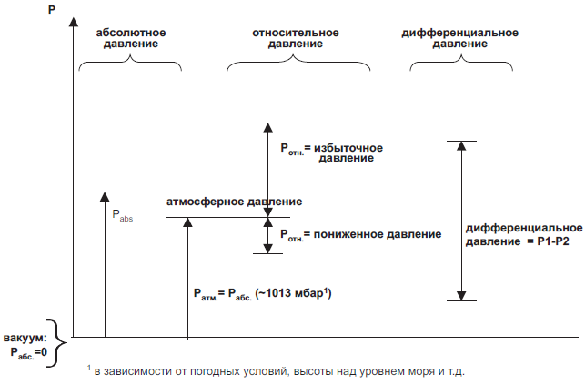Под абсолютным давлением подразумевается давление безвоздушного космического пространства (нулевое давление) или (искусственно) созданного вакуума. Абсолютное давление указывается с помощью индекса “абс”.