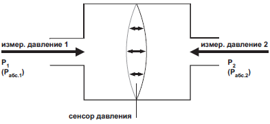 Под дифференциальным давлением подразумевается разница между давлением p1 и давлением p2 (Δp= p1-p2).