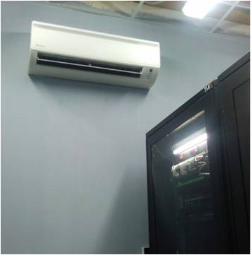 Идеальное решение для небольших серверных (до 4-х стоек), расположенных в отдельных комнатах здания. Для охлаждения используются бытовые сплит-системы. Процесс происходит направленным потоком холодного воздуха из внутренней части сплита.