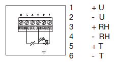 Верс. для воздуховодов A02 и настенная верс. A03 с подключаемым зондом Выход по току (2-провод.): от 4 до 20 мА, макс. нагрузка 500 Ω |
